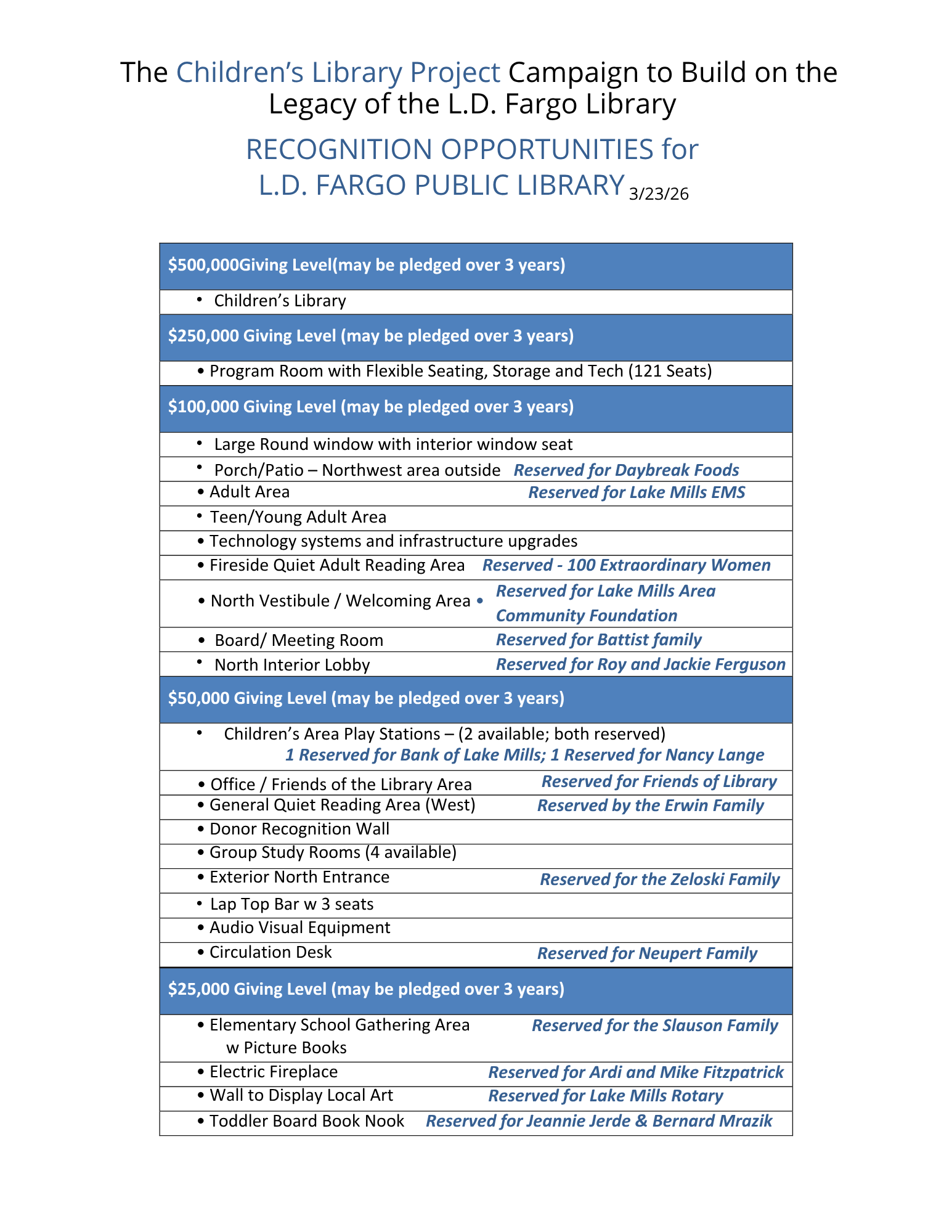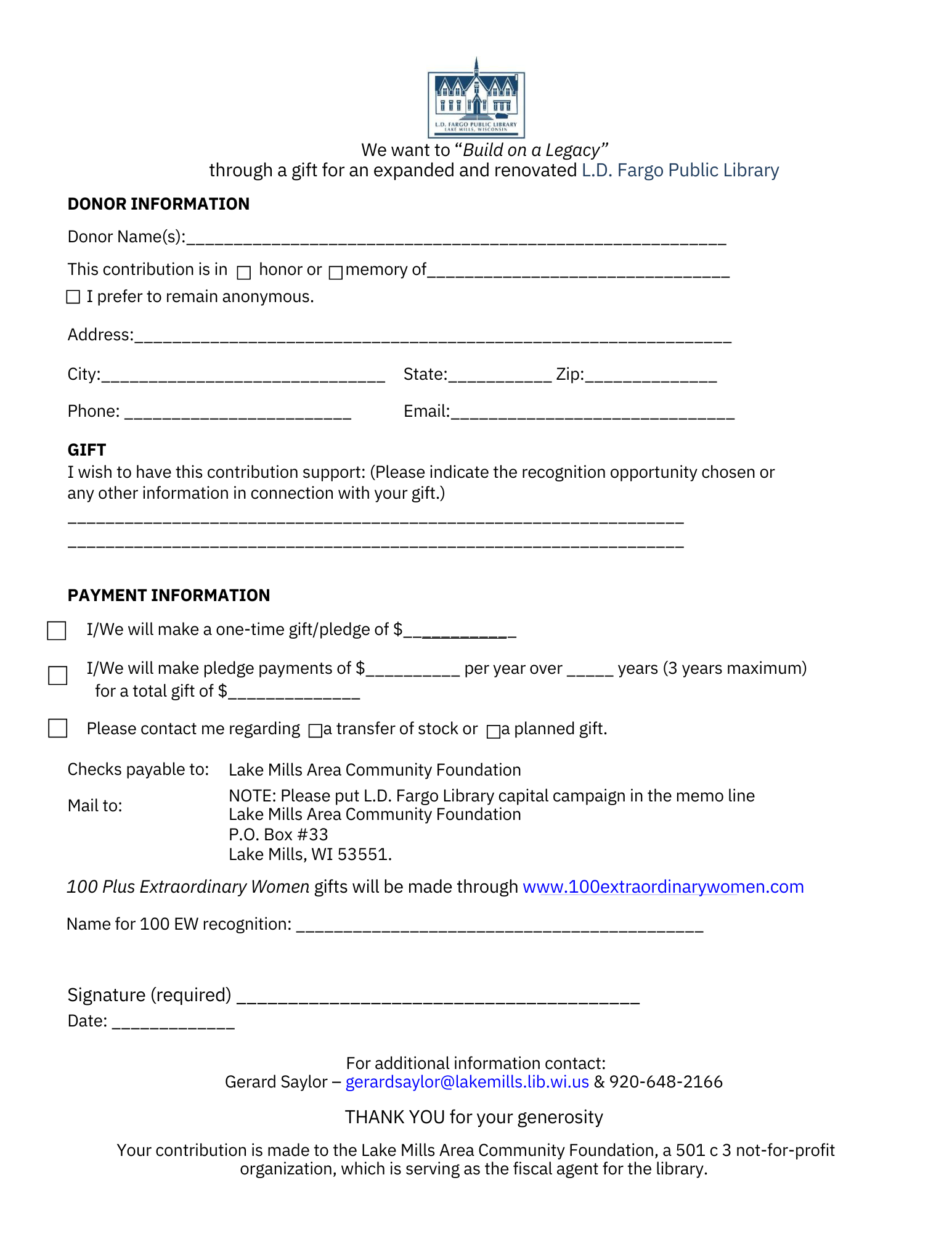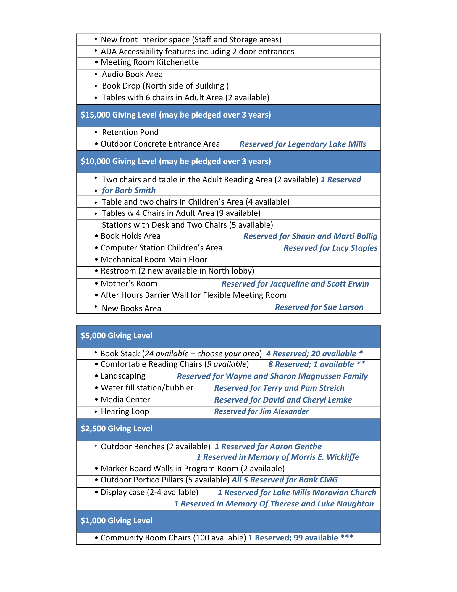 Bank of Lake Mills $50,000 donation to the library expansion.