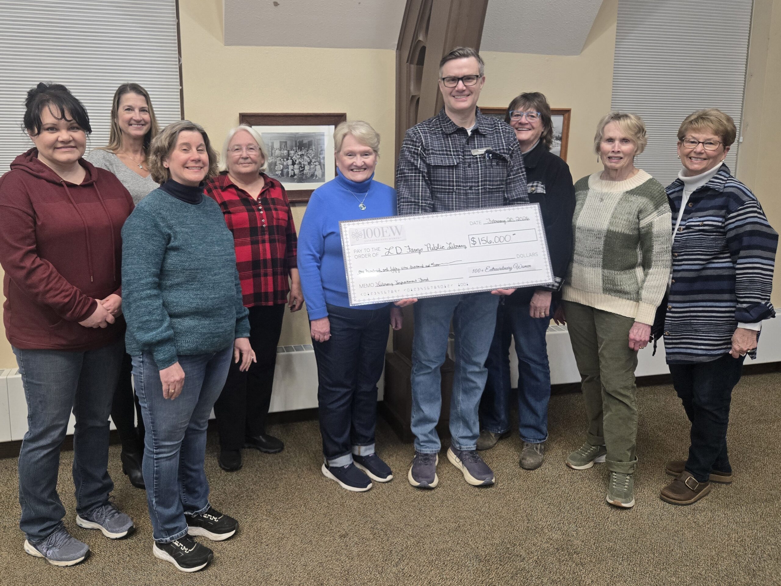 Pictured left to right: Mick Selk (GWCHF), Tima Crave (GWCHF), Margaret Hanrahan (GWCHF), Ben Wehmeier (GWCHF), Andi Merfeld (GWCHF), Drake Daily (City of Lake Mills), Kristi Wendt (Library), Ethan Floerke (Library), Andrea Turke (Library), Gerard Saylor (Library), Liesa Kerler (City of Lake Mills), Becca Feirer (Library),